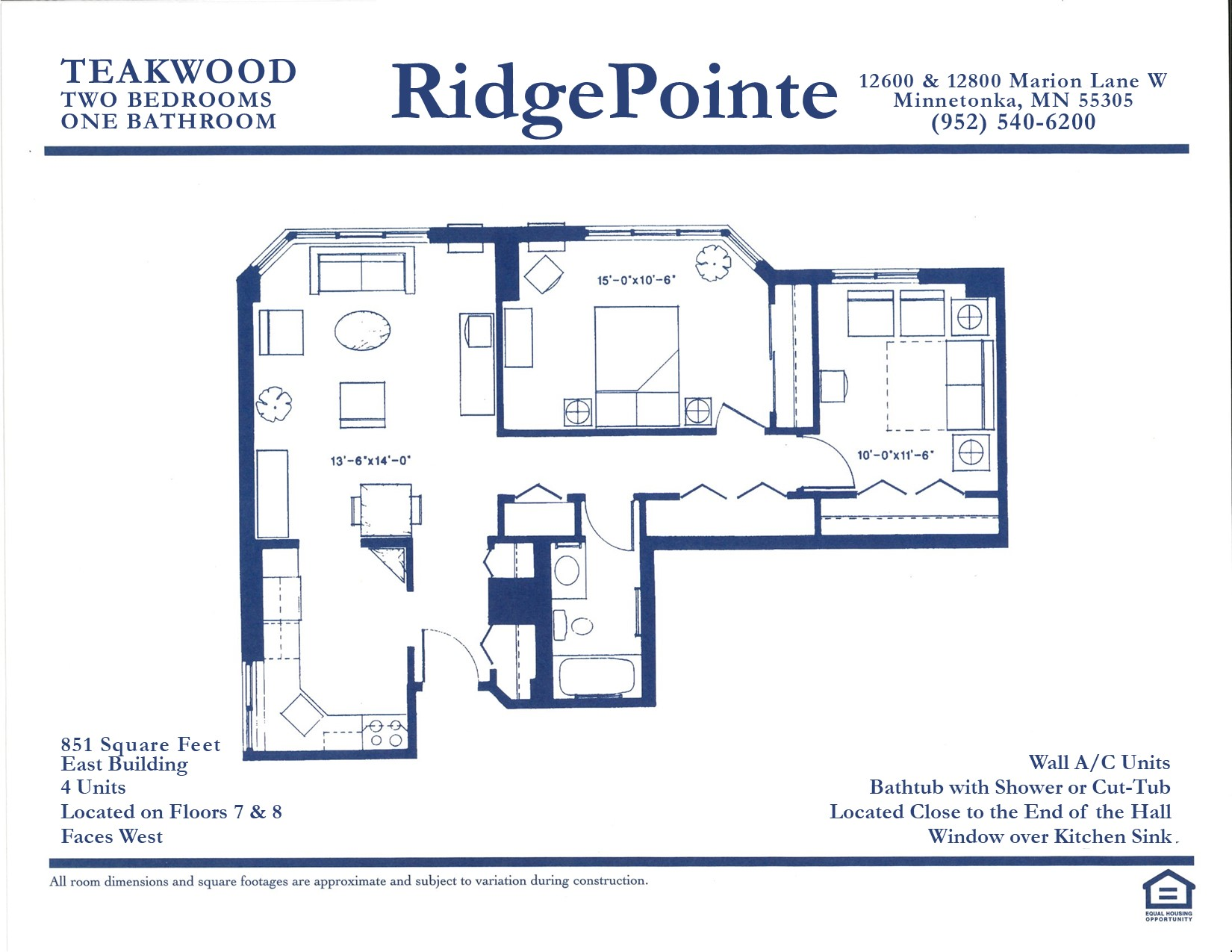 Two Bedroom/1.5 Bathrooms (2BR/1.5BA)